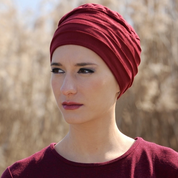 Turban Lola bordeaux doublé, ultra doux en fibre de Bambou.